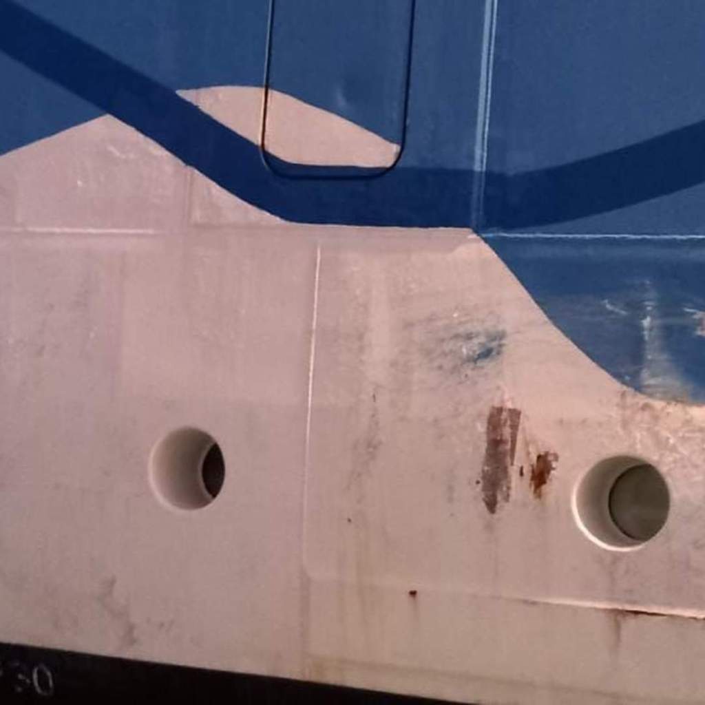 The Ferry reportedly lost power and drifted into the hull of the Aida Luna cruise ship which was berthed in the Harbour. No one was injured in the collision.