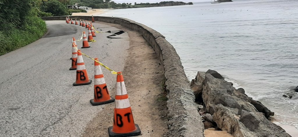 The Ministry of Works will be conducting repairs to the roadway and seawall in attempts to further reinforce it from being breached by the sea and ask that the public please take note of any notices placed along the roadway and be cautious while travelling within this area of Crabb Hill.