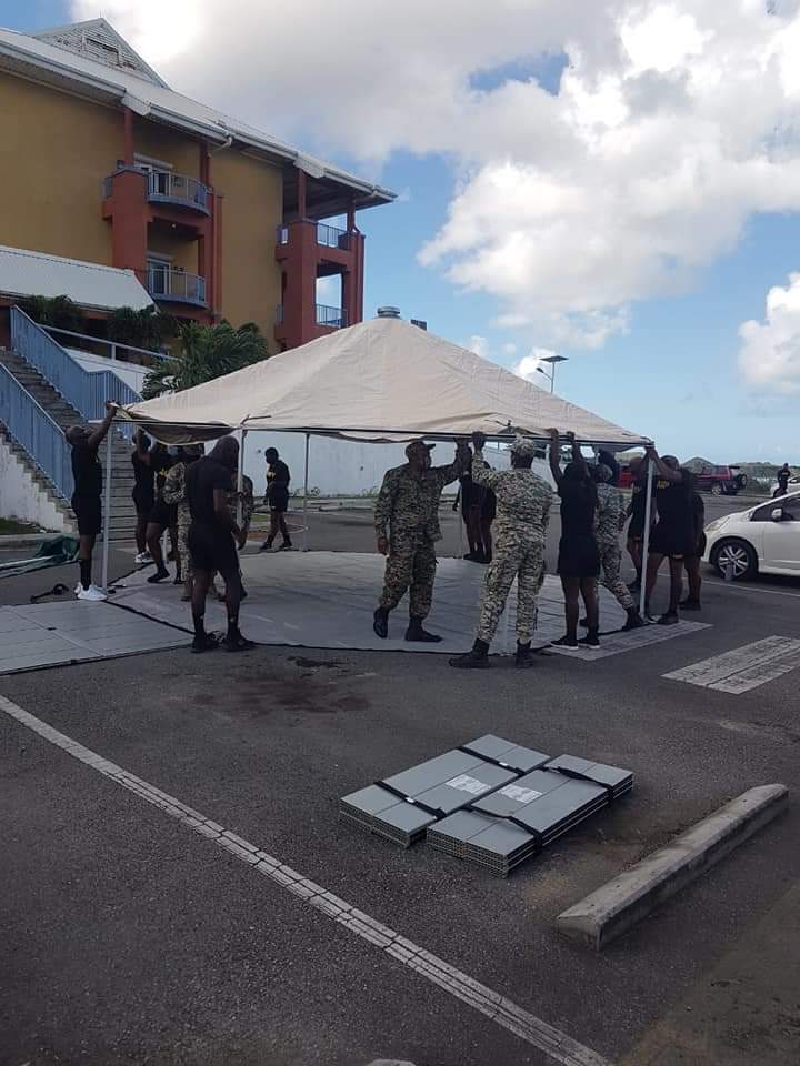 The Antigua and Barbuda Defense Force (ABDF) in its continued commitment to fighting the COVID-19 pandemic has erected a number of mobile hospital units on the grounds of the Sir Lester Bird Medical Centre (SLBMC). These units will aid the Ministry of Health in responding to the surge of COVID-19 cases in Antigua and Barbuda.