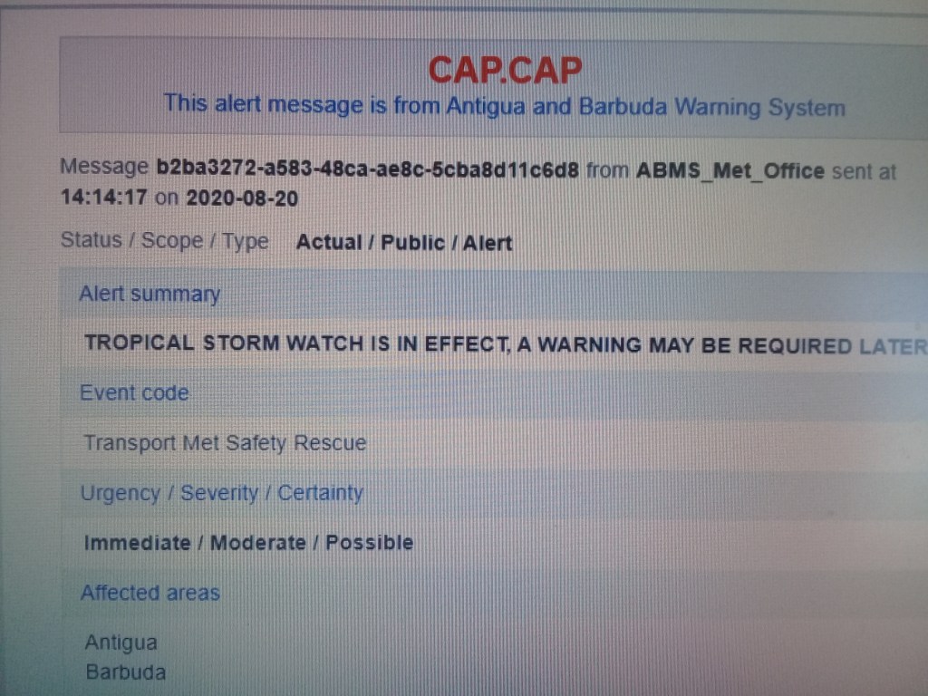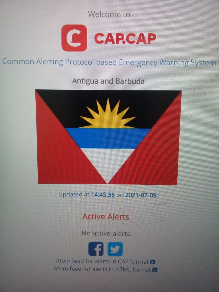 The CAP early warning system was installed in Antigua and Barbuda in March 2018 and presently sends alerts via an app on smartphones and also through email.