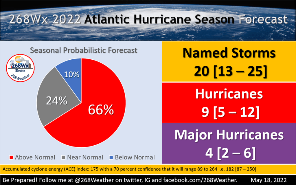 Dale C. S. Destin: My May updated forecast for the 2022 Atlantic Hurricane Season is out, and it continues to call for a very busy and active season with the potential of being super hyperactive. As of May 18, the forecast is for 20 named storms (down 1), 9 hurricanes (unchanged) and 4 major hurricanes (unchanged).