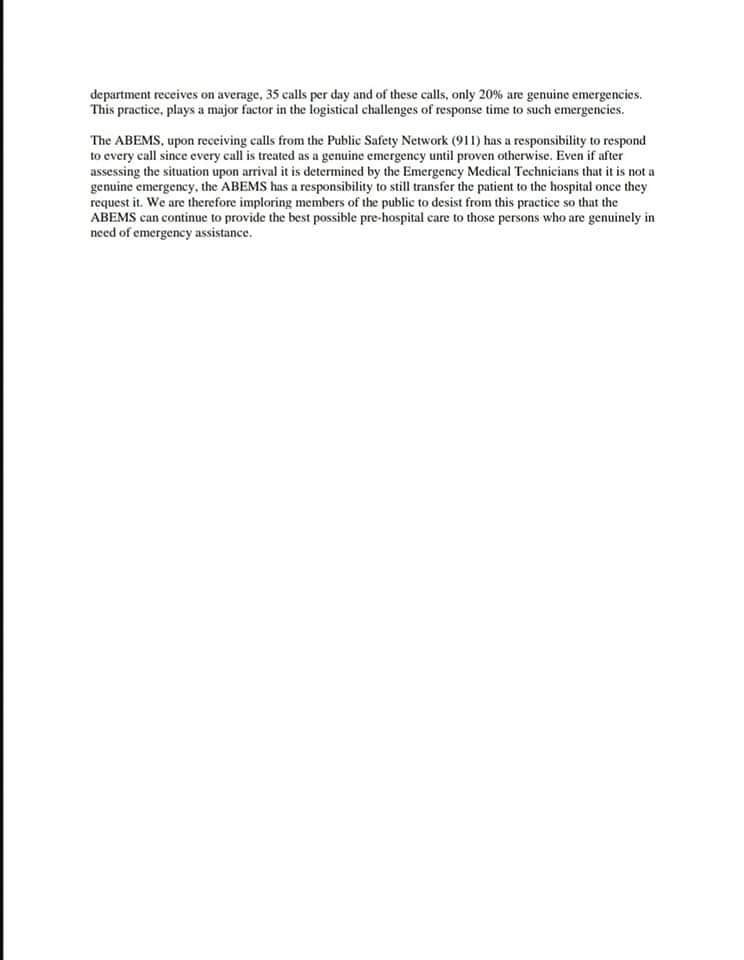 We are therefore imploring members of the public to desist from this practice so that the ABEMS can continue to provide the best possible pre-hospital care to those persons who are genuinely in need of emergency assistance.