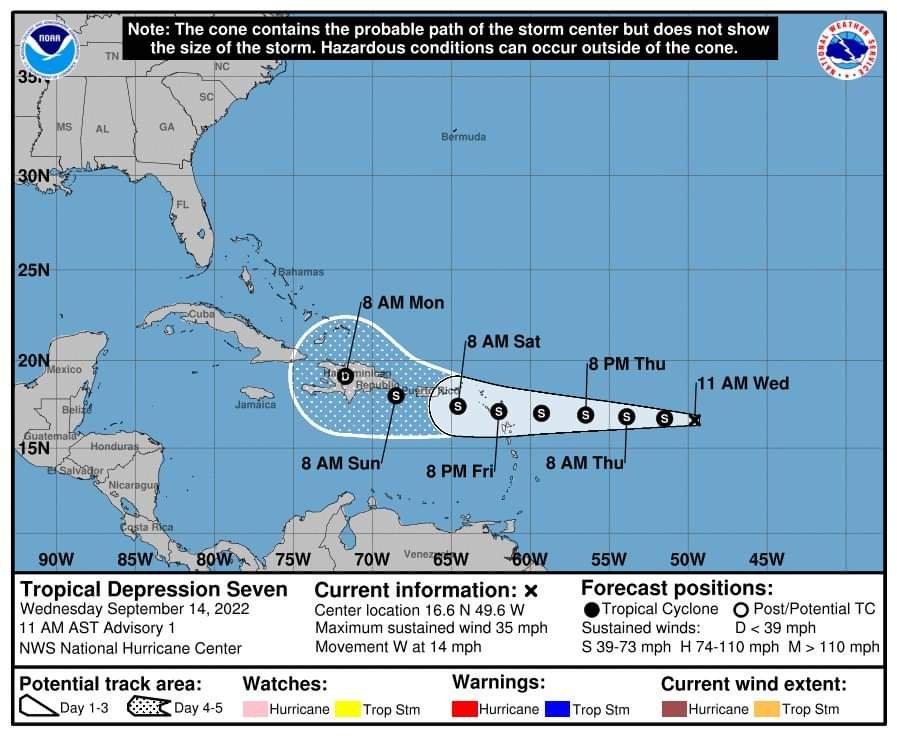 Residents are urged to monitor tropical depression seven closely and be prepared to implement their hurricane plans if called upon to do so. The threat is minor, at this time, but it could increase to moderate/medium with the potential for significant impacts.