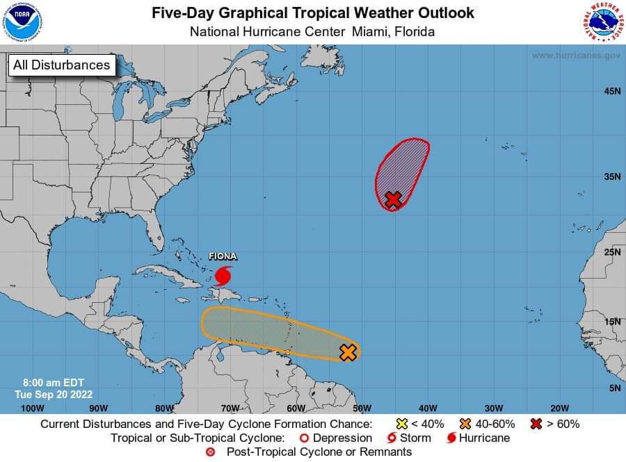 National Hurricane Center (NHC) – A tropical wave located several hundred miles east of the Windward Islands is producing a broad area of disorganized showers and thunderstorms while moving westward at 15-20 mph.
