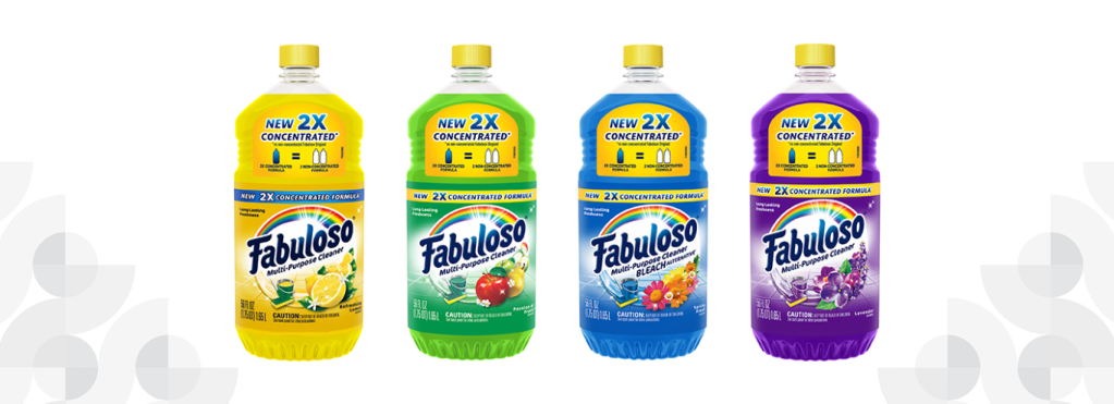 • Fabuloso Multi-Purpose Cleaner 2X Concentrated Formula, Refreshing Lemon Scent, 33.8 FL OZ, 56 FL OZ, 128 FL OZ, and 169 FL OZ