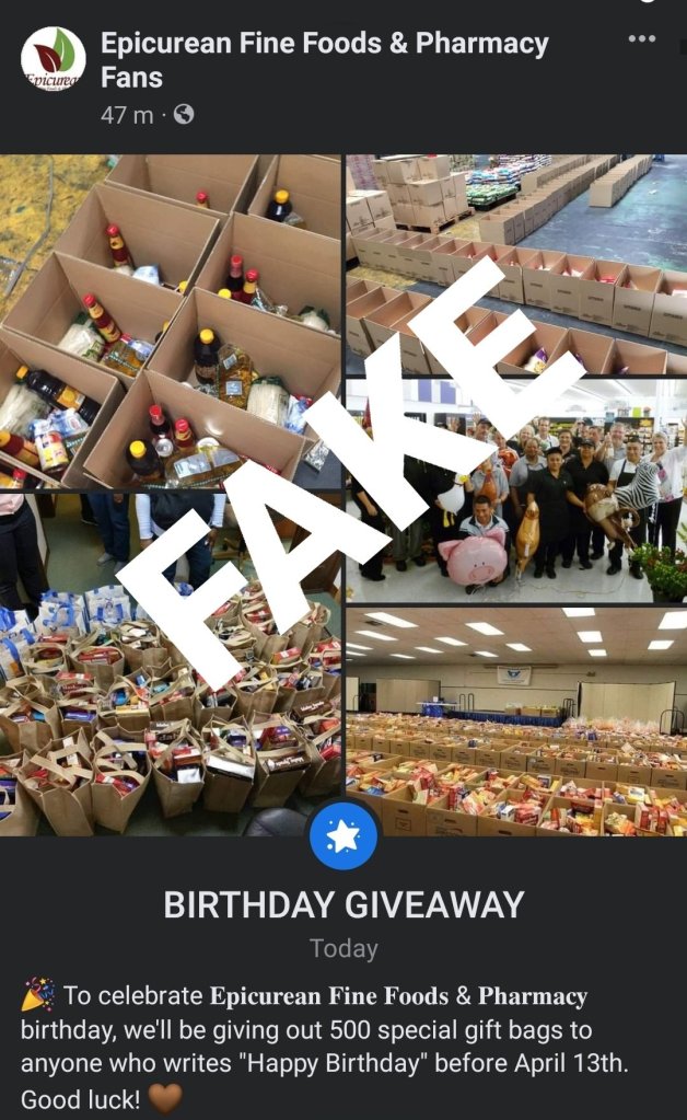 We will only ever share our promotions or contact winners through our established Epicurean Fine Foods & Pharmacy Facebook and Instagram pages. Have a safe week!