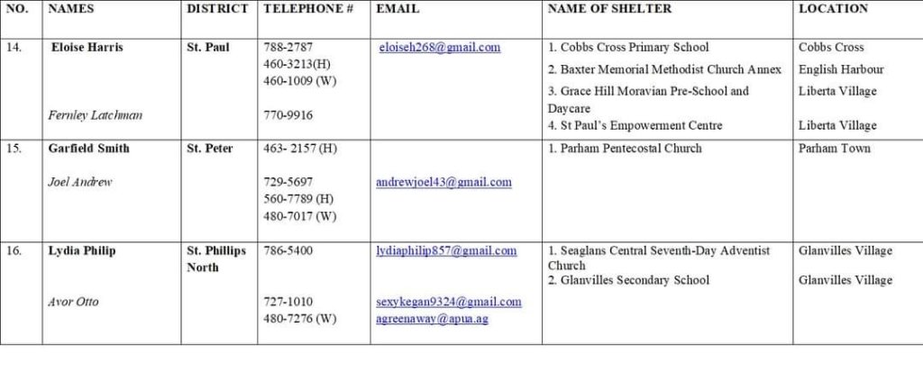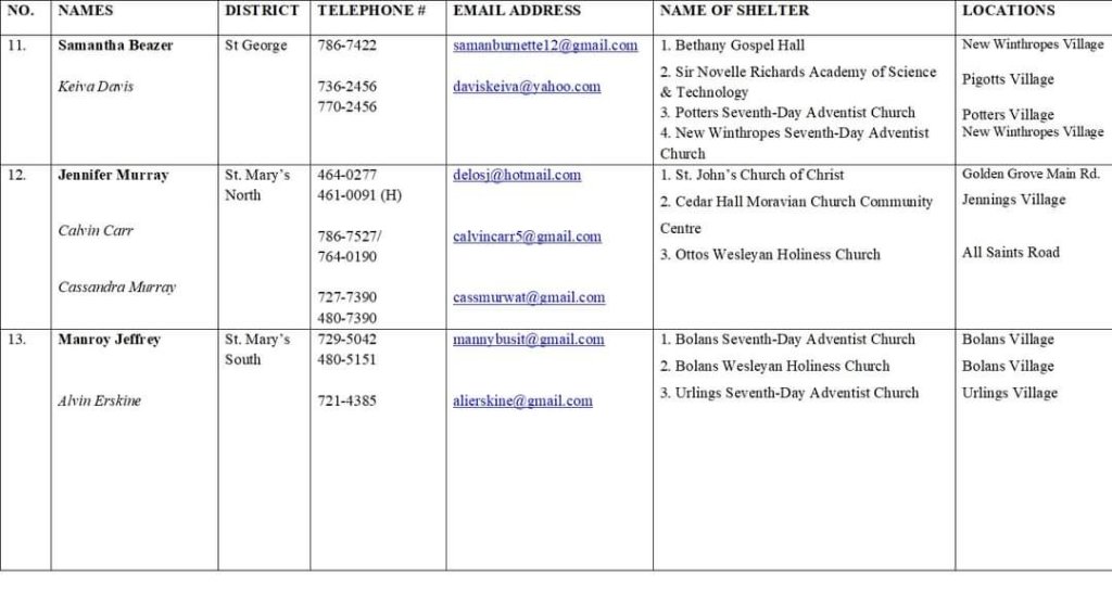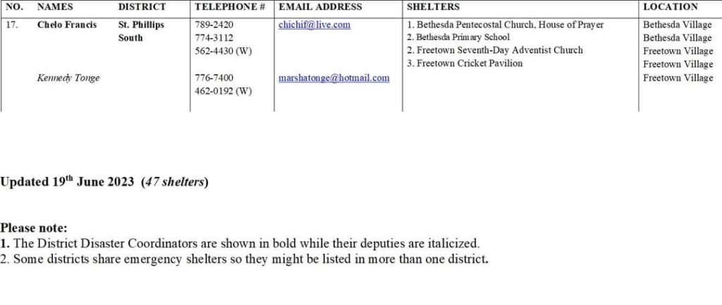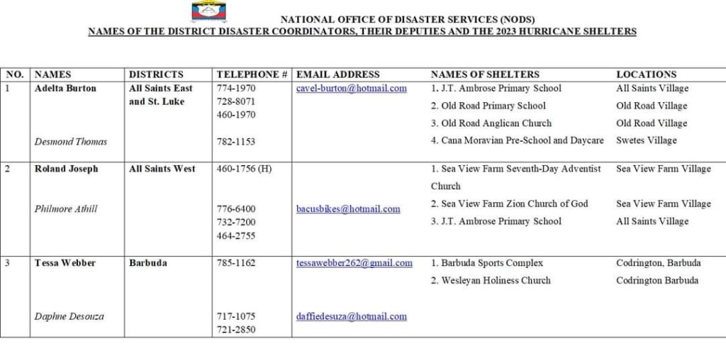 The National Office of Disaster Services (NODS) has released the names of the 2023 hurricane shelters. Forty-seven structures have been identified by the disaster organization for use should the need arise.