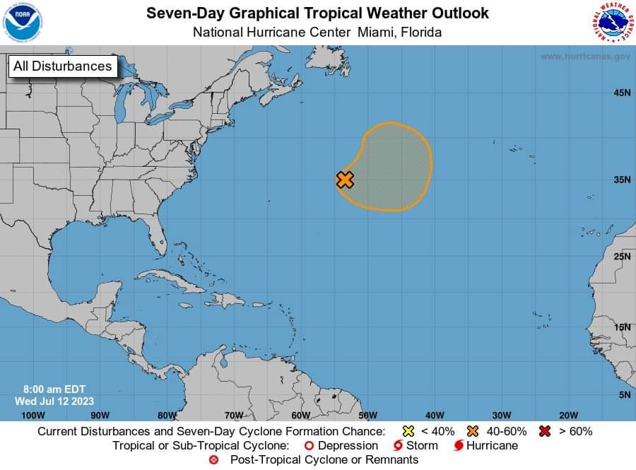 National Hurricane Center (NHC) – This Wednesday, an area of low pressure located more than 500 miles east-northeast of Bermuda continues to produce disorganized showers and thunderstorms well to the south of its center.