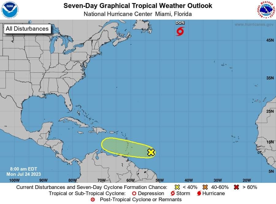 National Hurricane Center (NHC) – In the East of the Windward Islands, a broad area of low pressure associated with a tropical wave is located several hundred miles east of the Windward Islands.