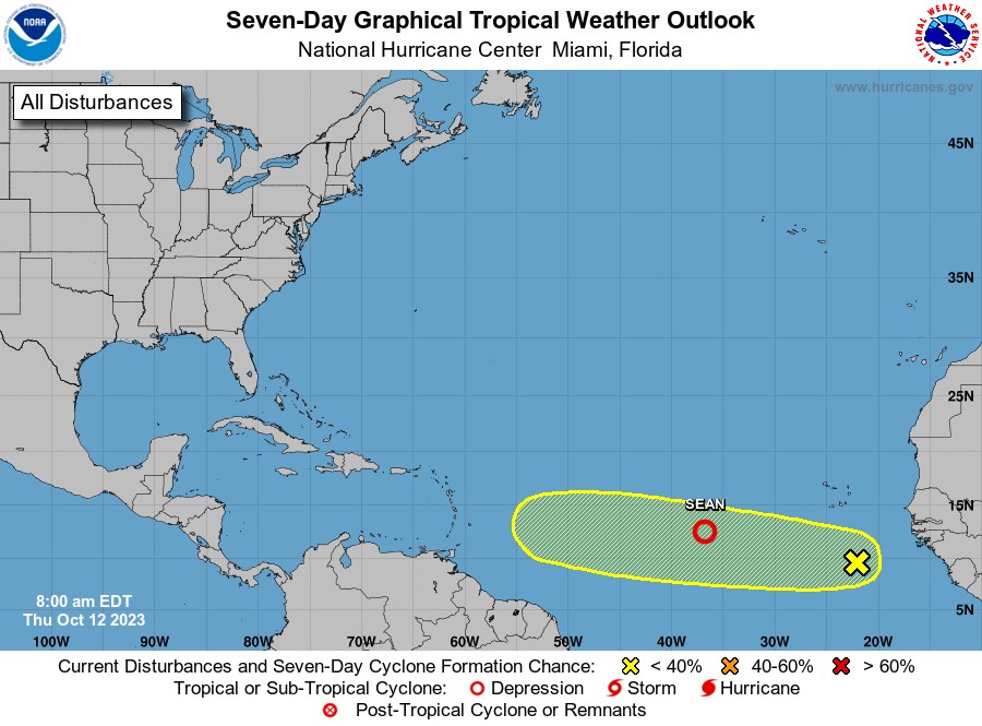 In the Eastern Tropical Atlantic (AL94), a broad area of low pressure located several hundred miles south of the Cabo Verde Islands continues to produce some disorganized showers and thunderstorms.