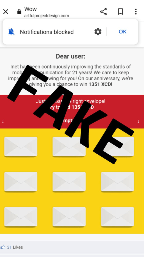 INET – It has been reported by a few customers that they have received this pop up ad while browsing the internet.