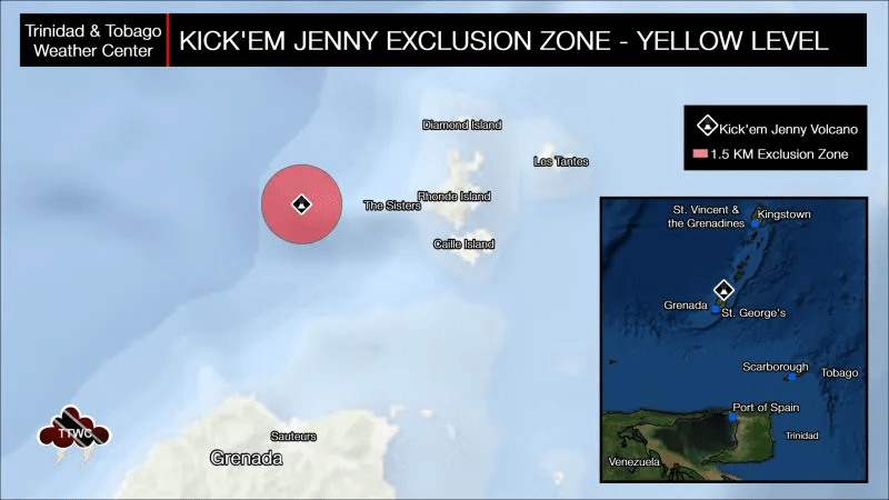 Trinidad and Tobago Weather Center (TTWC) – Over the last 48 hours, Kick’em Jenny, a submarine volcano located just north of Grenada, has experienced increased seismic activity.