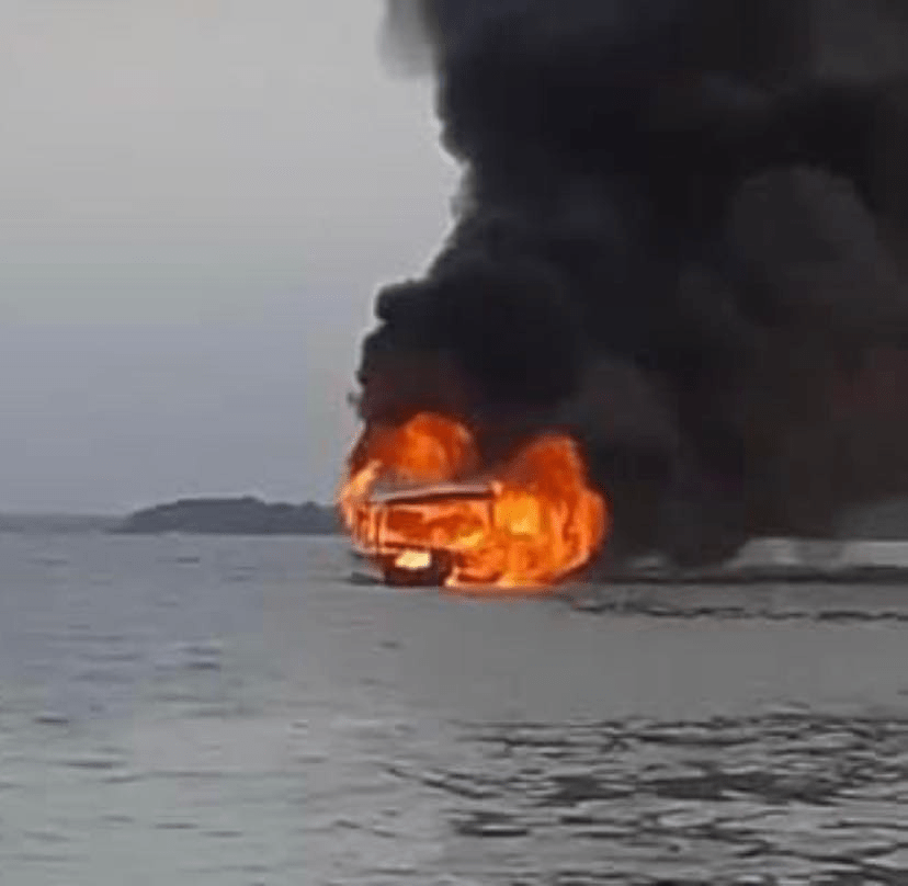 Ministry of Home Affairs – An Orealla water ambulance tragically caught fire in the Corentyne River this afternoon (Monday, March 11, 2024), shortly after dropping off a patient at Skeldon Hospital.