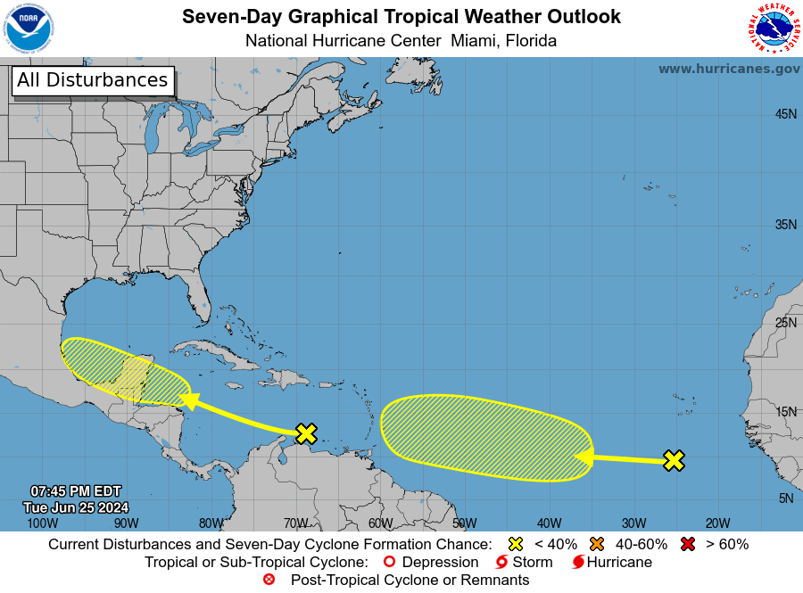 Some slow development of this system is possible this weekend and into early next week while it moves generally westward across the central and western tropical Atlantic at 15 to 20 mph.