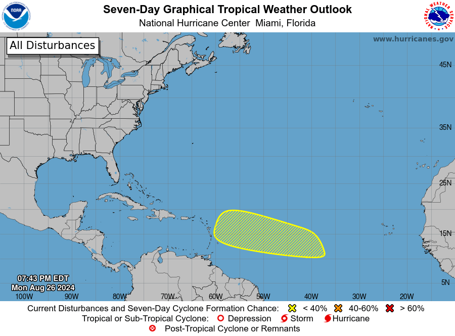 An area of low pressure could form in the central portion of the Tropical Atlantic in a few days.