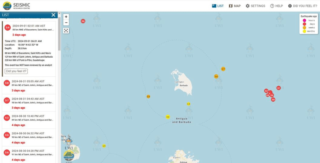 The University of the West Indies Seismic Research Centre (UWI-SRC) has reported that over the weekend, seven earthquakes were recorded 89-91km NE of Antigua.