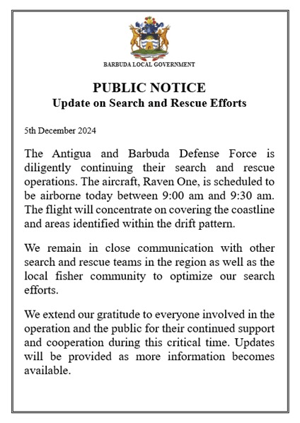 Barbuda Local Government: The Antigua and Barbuda Defense Force is diligently continuing their search and rescue operations.