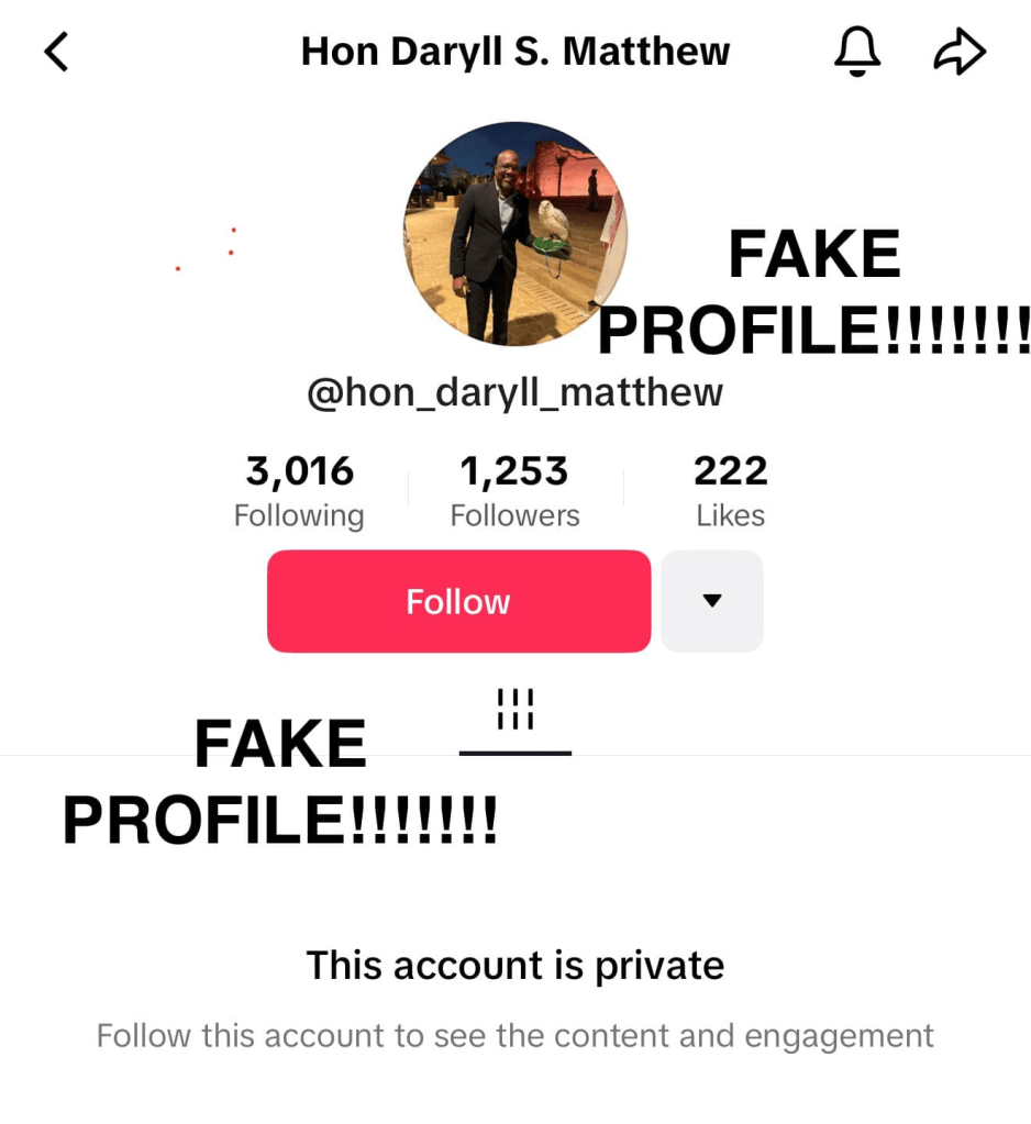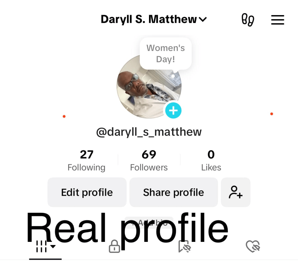 Daryll S. Matthew: Please do not accept any requests to follow this TikTok account. Do not send them any money. Do not like their videos.