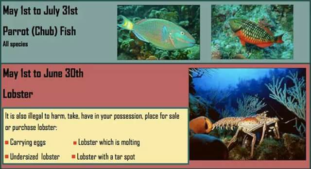 Antigua & Barbuda Fisheries Division: The general public is reminded that May 1 marks the start of the closed season for spiny lobster and Parrotfish in Antigua and Barbuda.