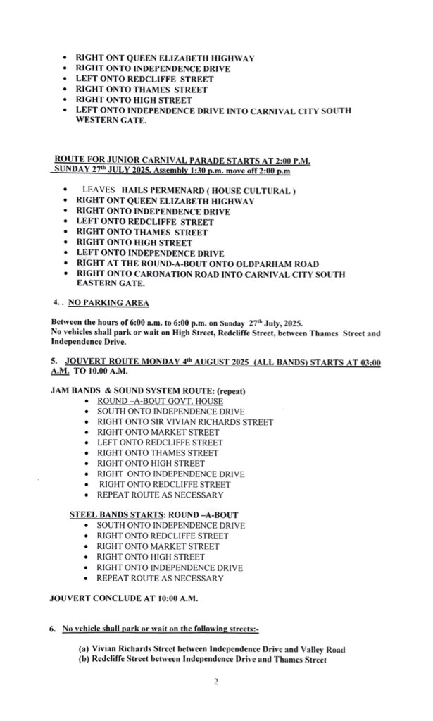 Office of Strategic Communications (STRATCOM): The Royal Police Force of Antigua and Barbuda has published its official Traffic Management Plan ahead of the commencement of the 2025 Carnival Celebrations.
