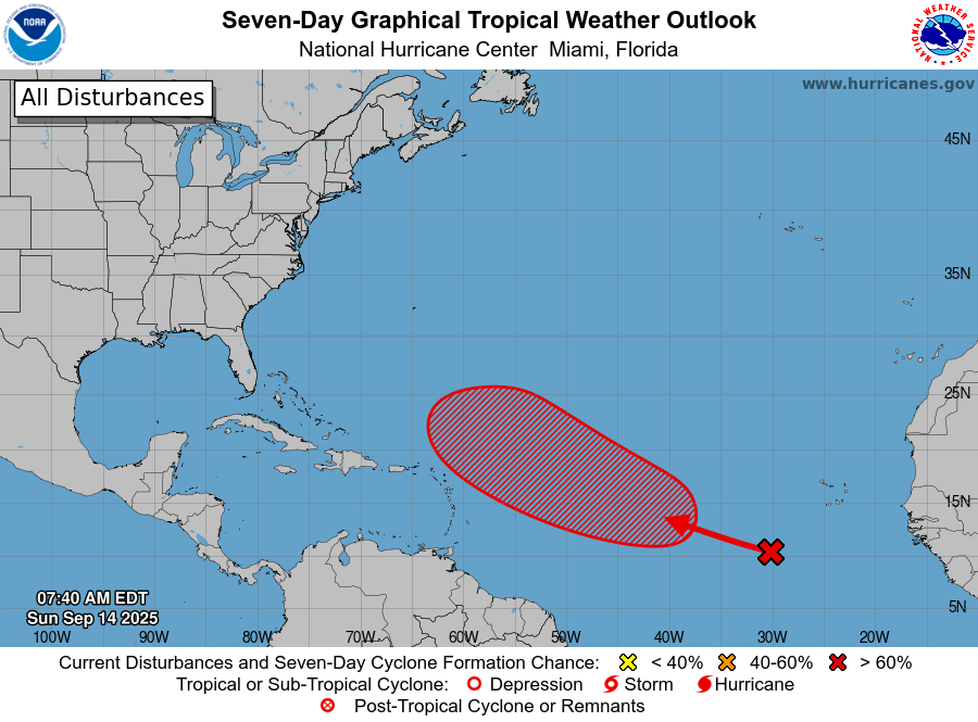 Although dry and stable air is expected to limit development during the next couple of days, gradual development is anticipated thereafter, and a tropical depression is likely to form during the middle to latter part of this week as the system moves west-northwestward at 10 to 15 mph over the central tropical Atlantic.