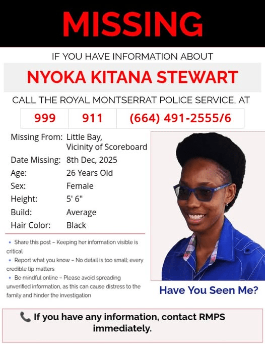 The Royal Montserrat Police Service (RMPS) wishes to assure the public that the investigation into the disappearance of Ms. Nyoka Stewart remains our highest priority.