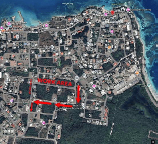 Work is currently progressing on a swale drain in Hodges Bay, in the vicinity of Matthias Drive (after Breeze Pointe Apartments, when travelling south).