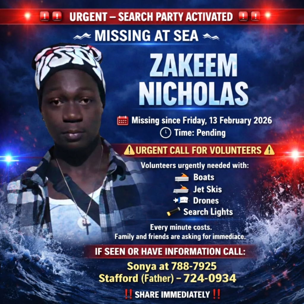Reports indicate that Mr. Nicholas and a companion went out to sea on the morning of Friday, 13 February, 2026 aboard a vessel for a recreational diving activity off Seaton’s Dock.