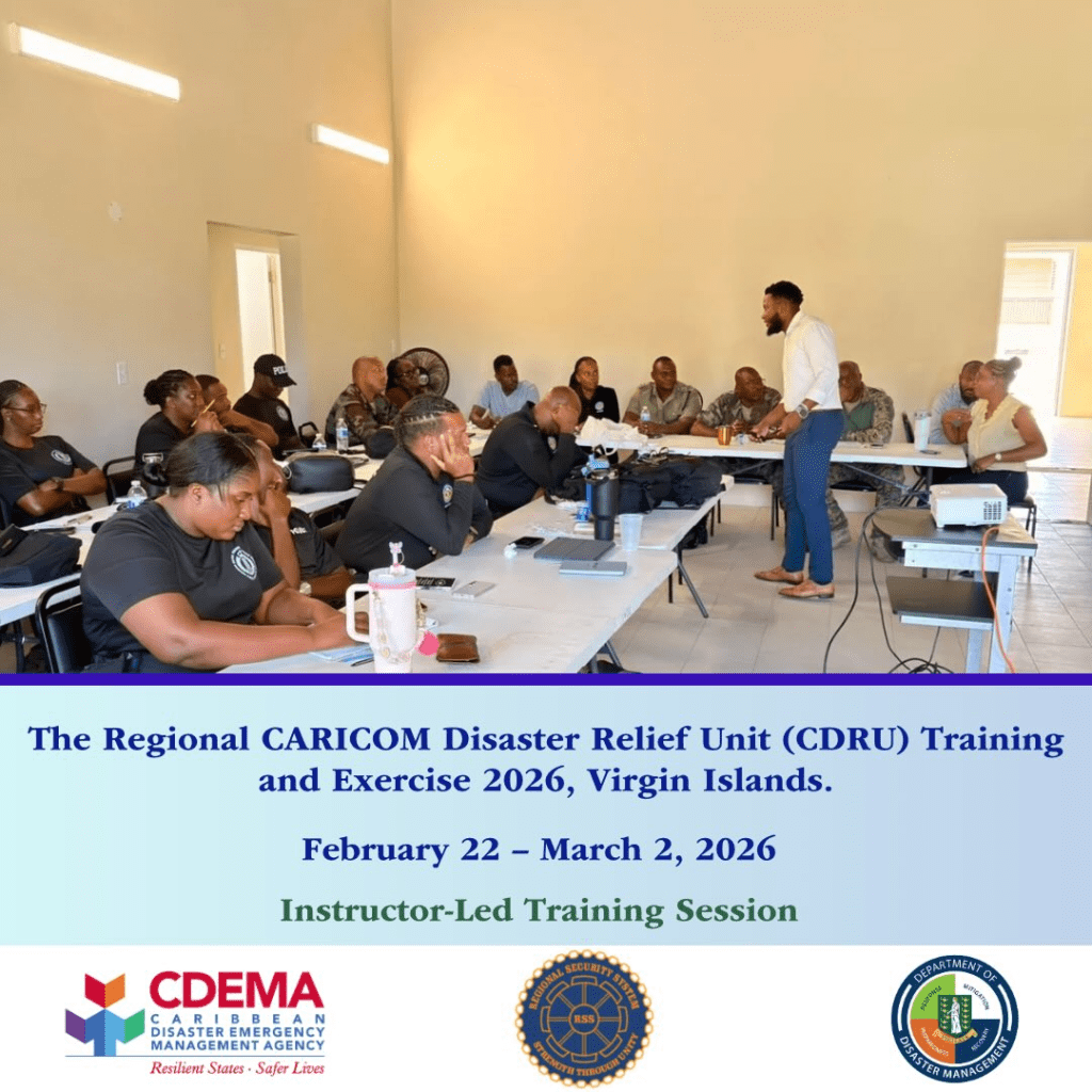 The Regional CARICOM Disaster Relief Unit (CDRU) Training & Exercise 2026, was held in the Virgin Islands from February 22 – March 2, 2026, and included 16 local BVI participants from the Royal BVI Police and Fire Forces, alongside 15 regional participants, who took part in the knowledge-focused sessions and practical training sessions.