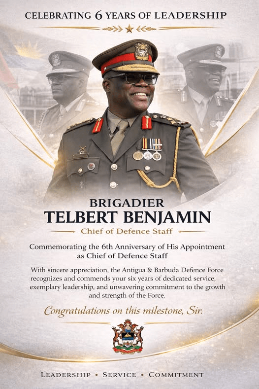 The Antigua and Barbuda Defence Force (ABDF) marks a significant milestone as Chief of Defence Staff Brigadier Telbert Benjamin celebrates his sixth year as the nation’s commanding military officer.